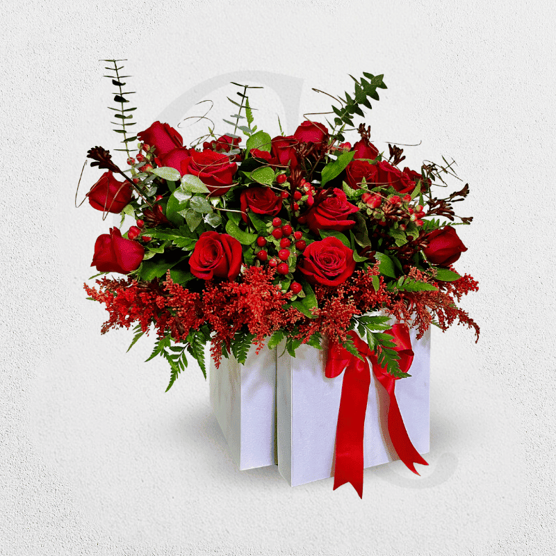 Desde la estructura firme del cubo, las rosas emergen con delicadeza y carácter. Un contraste sutil entre forma definida y floración libre que convierte esta pieza en una expresión de elegancia contenida.